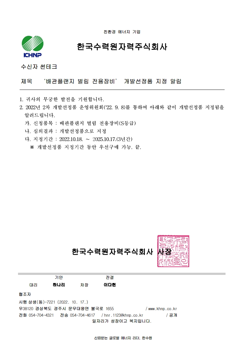 KHNP Qualified Supplier Registration (ME-AX1, Grade A)