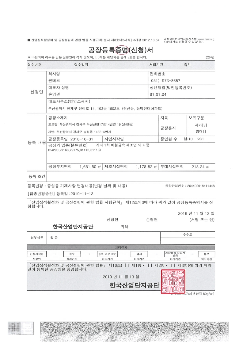 Factory registration certificate
