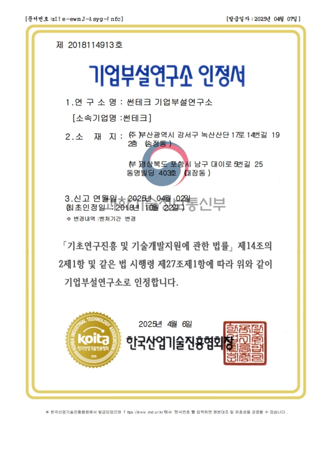 Certificate of R&D Center