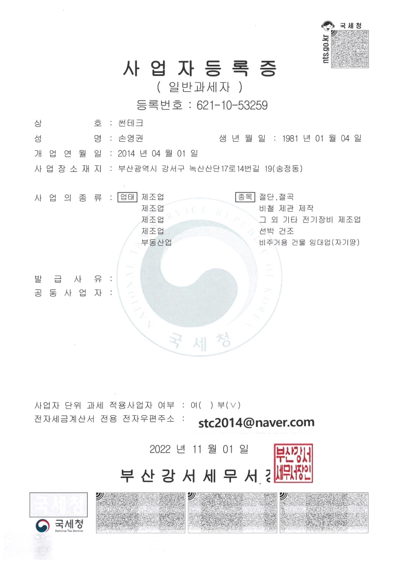 Business registration certificate